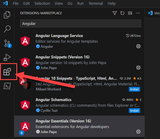 The best way to get all the best extensions for VS Code Angular development is to use an extension to install extensions. John Papa's "Angular Essentials" extension will install all of them for you.